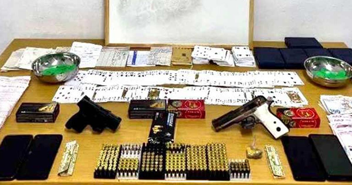 Yapılan aramada; değişik çaplarda iki adet ruhsatsız tabanca, 2 adet şarjör, 233 adet fişek, 5 gram kubar esrar, 2 fişek içimlik kubar esrar, 2 paket sigara sarma kağıdı, 5 deste iskambil kağıdı, 105 adet poker oyunu pulu, 53 bin 940 TL para 45 Euro, 60 ruble, 2 dolar, 6 adet boş senet, 13 adet kumar hesabının tutulduğu yazboz ve kumar hesabının tutulduğu ajanda ele geçirildi.