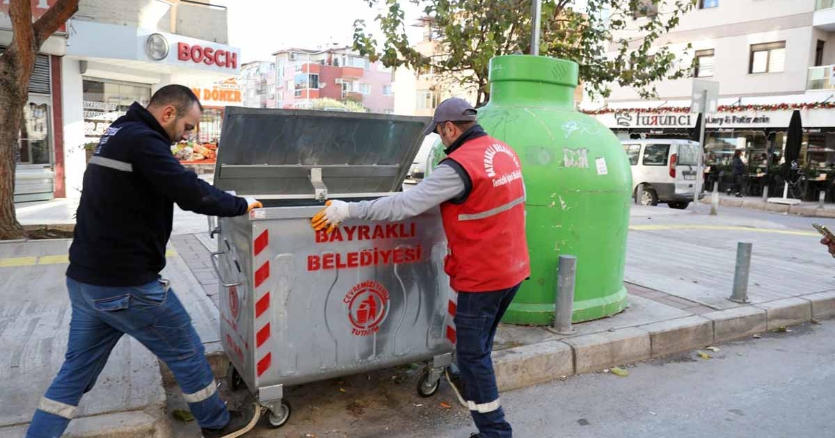 Bayraklı Belediyesi Temizlik İşleri Müdürlüğü, çevre temizliği ve halk sağlığını koruma amacıyla ilçe genelinde çalışma başlattı. Bu kapsamda deforme olan, eskiyen ve kullanılamayacak durumdaki çöp konteynerleri temizleniyor, kaynak yapılıyor, boyanıyor, kullanılamayacak durumdakiler ise yenileriyle değiştiriliyor.