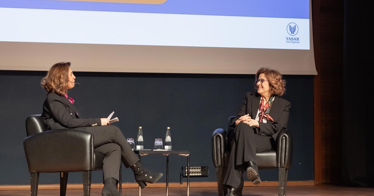 Selçuk Yaşar Kampüsü Konferans Salonu’nda TSKF Kadının Ekonomik Güçlendirilmesi Çalışma Grubu Koordinatörü Dilek Cesur’un moderatörlüğünde düzenlenen toplantıya Yaşar Holding Yönetim Kurulu Başkan Vekili İdil Yiğitbaşı konuk oldu.