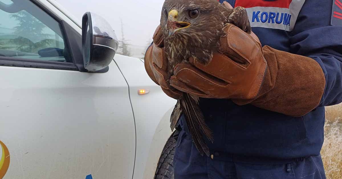 Afyonkarahisar'da devriye gezen jandarma ekipleri tarafından bulunan yaralı kızıl şahin koruma altına alındı.