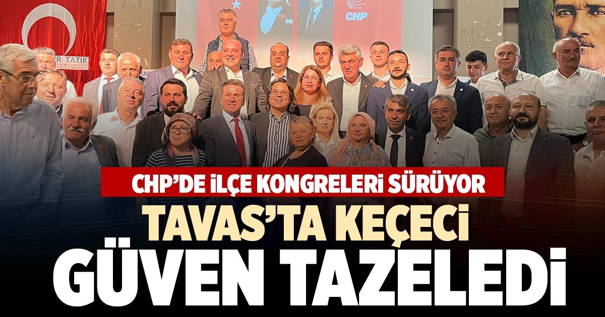 CHP Tavas ilçe kongresinde başkan Hasan Keçeci delegelerin yeniden desteğini aldı, güven tazeledi.