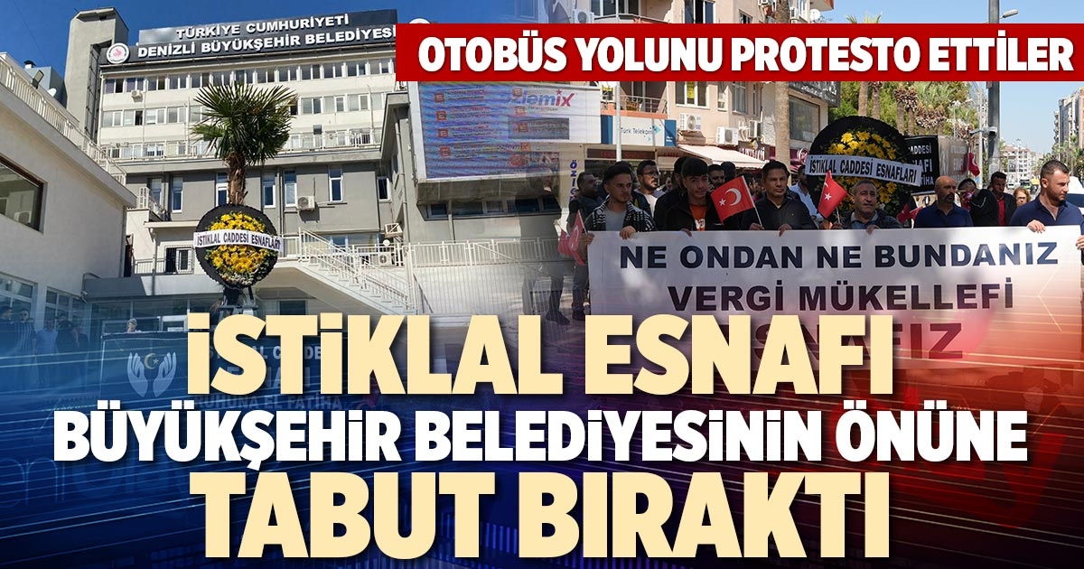 Denizli Büyükşehir Belediyesi tarafından İstiklal Caddesinde hayata geçirilen ‘Otobüs Yolu' projesinden şikayetçi olan bir kısım esnaf, "İstiklal Caddesi esnafı ruhuna el Fatiha' yazılı tabut ve siyah çelenkle büyükşehir belediyesine yürüdü. Tabutu belediyenin girişine bırakan esnaf, işyerlerinin kapanmaya başladığını iddia etti.