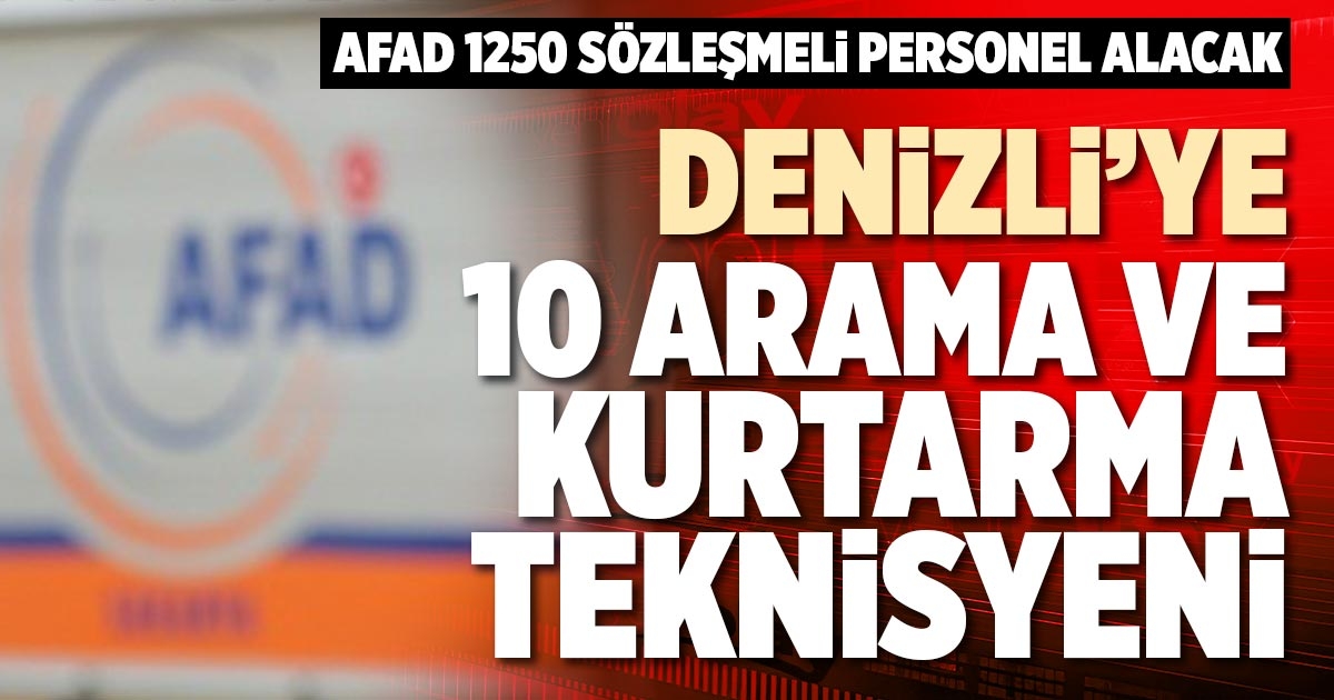İçişleri Bakanlığı Afet ve Acil Durum Yönetimi Başkanlığı (AFAD), taşra teşkilatında istihdam edilmek üzere; uygulama ve sözlü sınavla 77 sözleşmeli arama ve kurtarma teknikeri ile 1.173 sözleşmeli arama ve kurtarma teknisyeni alımı yapacak. Denizli için de 10 arama ve kurtarma teknisyeni kadrosu ayrıldı.