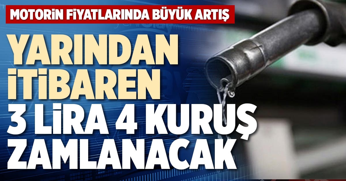 Sektör kaynaklarından edinilen bilgiye göre, bu gece yarısından itibaren geçerli olmak üzere akaryakıt ürünlerinden motorine büyük bir zam yapılacak. 25 Ekim Cumartesi gününden itibaren motorinin litre fiyatında 3 lira 4 kuruş artış yapılması bekleniyor. Cumayı cumartesiye bağlayan geceden itibaren değişecek tabelalarla birlikte motorinin litre fiyatındaki artış pompaya yansıyacak.