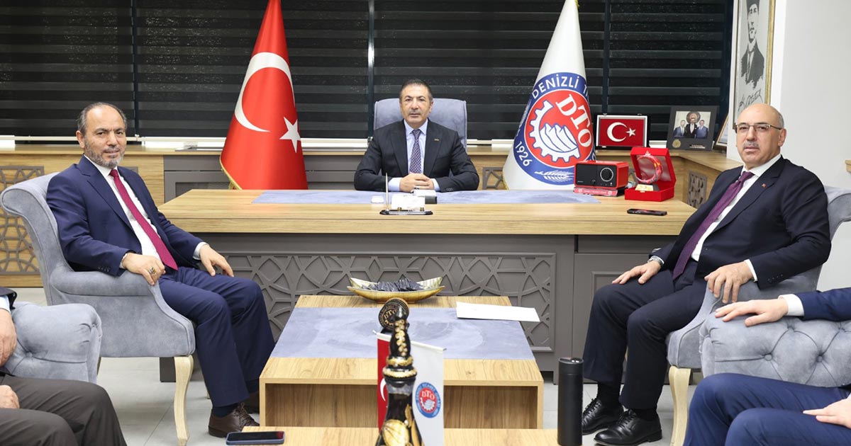 PAÜ Rektörü Prof. Dr. Mahmud GÜNGÖR, Yükseköğretim Kurulu Yürütme Kurulu Üyesi Prof. Dr. Mahmut Ak, Rektör Yardımcıları Prof. Dr. Ersan Öz ve Prof. Dr. Mehmet İnel’in yer aldığı akademik heyet, Denizli Ticaret Odası Yönetim Kurulu Başkanı Uğur Erdoğan ve yönetim kurulu üyelerini makamlarında ziyaret etti. Ziyarette, üniversitenin kentle bütünleşen vizyonu çerçevesinde yürütülen çalışmalar ve yükseköğretim ile iş dünyası arasındaki etkileşimin güçlendirilmesine yönelik planlamalar ele alındı.