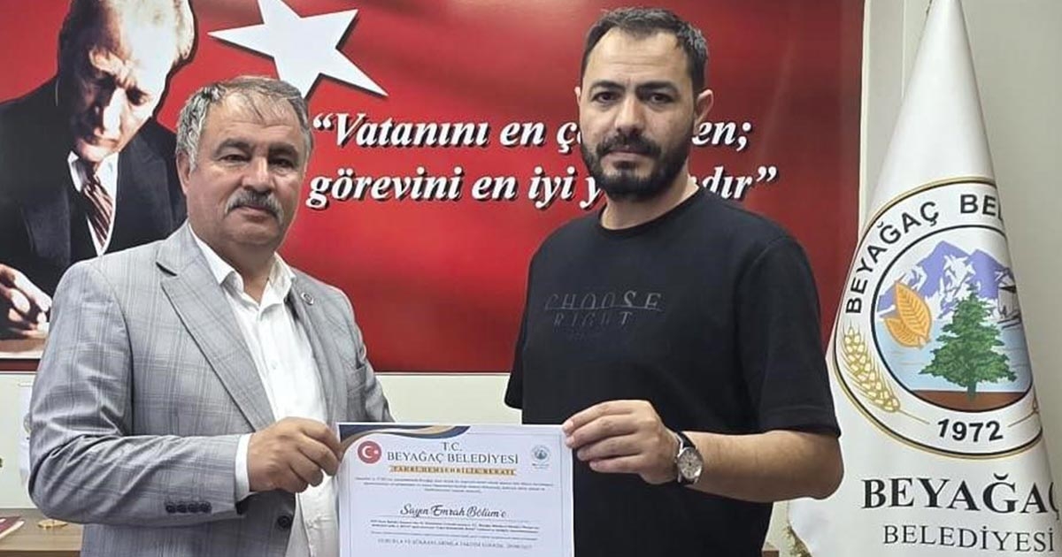 Öğrencilere verdiği emek ve Beyağaç’ın tanıtımına yaptığı katkı için Emrah Bölüm’e teşekkür eden Başkan Pütün, "Bu berat, Emrah Hocamızın Beyağaç’ımıza kazandırdığı değerli katkıların bir nişanesi olarak, gurur ve şükran duygularımızla sunulmuştur" diye konuştu.