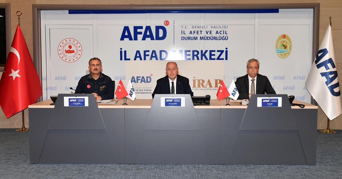Denizli Valisi Ömer Faruk Coşkun başkanlığında AFAD Başkan Yardımcısı Dr. Önder Bozkurt’un katılımıyla gerçekleştirilen İl Afet Risk Azaltma Planı (İRAP) değerlendirme toplantısında, afet risklerini önlemeye veya azaltmaya yönelik atılacak adımlar masaya yatırıldı.