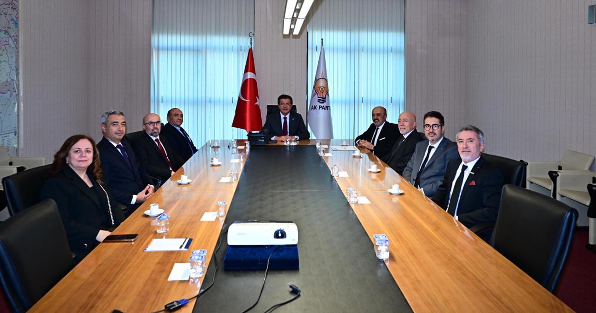 Ak Parti Genel Başkan Yardımcısı ve Ekonomi İşleri Başkanı Nihat Zeybekci’yi makamında ziyaret eden heyet, para politikaları, tekstil sektöründe yaşanan kayıplar, sanayinin bugün içinde bulunduğu durum ve geleceği ile ilgili düşüncelerini aktardı.