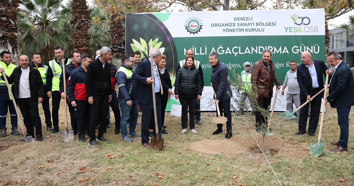 Denizli Organize Sanayi Bölge Müdürlüğü, 11 Kasım Milli Ağaçlandırma Günü kapsamında çevreye duyarlı sanayi anlayışını yansıtan anlamlı bir etkinlik gerçekleştirdi. Denizli OSB Yönetim Kurulu Başkanı Derya Baltalı, Başkanvekili Selim Yaymanoğlu, yönetim kurulu üyeleri Mehmet Çalışkan ve İsmail Aslan ile Bölge Müdürlüğü personelinin katılımıyla düzenlenen fidan dikim etkinliğinde, doğaya ve geleceğe nefes olacak yeni fidanlar toprakla buluşturuldu. Etkinlik kapsamında OSB alanı içerisinde oluşturulan yeşil alanlara yüzlerce fidan dikildi. Böylece sürdürülebilir çevre ve yeşil sanayi bilincinin güçlendirilmesi hedeflendi.