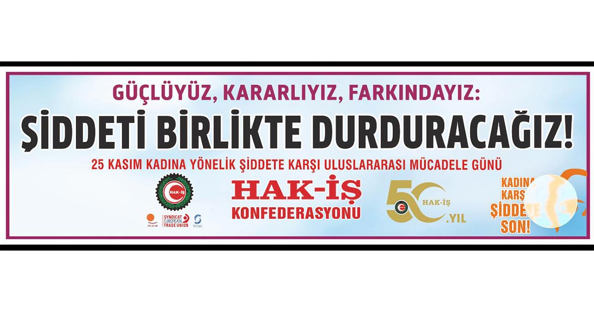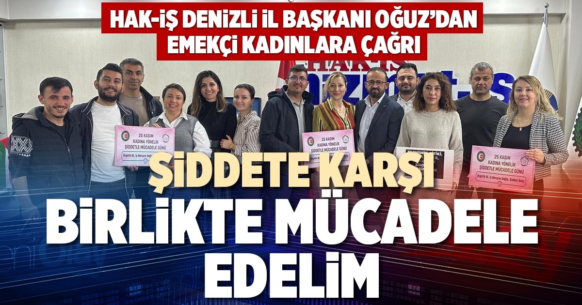 HAK-İŞ Konfederasyonu 25 Kasım Kadına Yönelik Şiddete Karşı Uluslararası Mücadele Günü kapsamında, kadın ve çocuklara yönelik şiddete karşı Türkiye genelinde meydanlarda seslerini yükseltti. Denizli İl Başkanı Muhammet Ali Oğuz, emekçi kadınları şiddete karşı Hak-İş çatısı altında mücadele etmeye çağırdı.