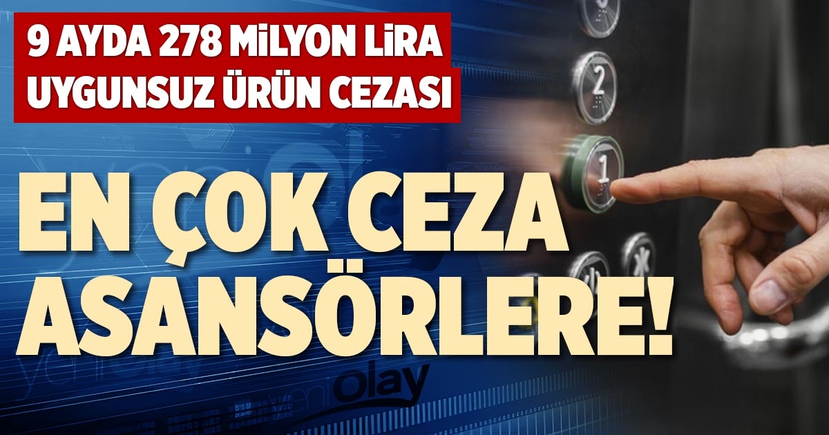 Yılın ilk dokuz ayında en fazla para cezası uygulanan ürün grubu asansörler oldu. Toplam 10 bin 258 asansör denetlenirken, bunlardan 2 bin 352’si uygunsuz bulundu. Denetim sürecinde 156 asansör teste gönderildi, 181 asansör için ise düzeltme süresi verildi. Asansörlere uygulanan toplam para cezası 154 milyon 252 bin 869 liraya ulaştı.