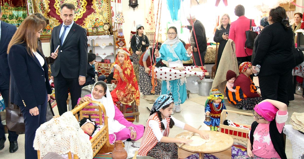 Programın ardından İl Sağlık Müdürü Uz. Dr. Berna Öztürk ve katılımcılar, Osman Aydınlı İlkokulu’nda düzenlenen “Millî Kültür Öğelerimiz” Sergisi’ni ziyaret etti. Sergide çocukların yaptığı yöresel üretimler ile geçmişte kullanılan mutfak eşyaları, kıyafetler, ev eşyaları, aksesuarlar ve çeşitli aletler yakından incelendi.
