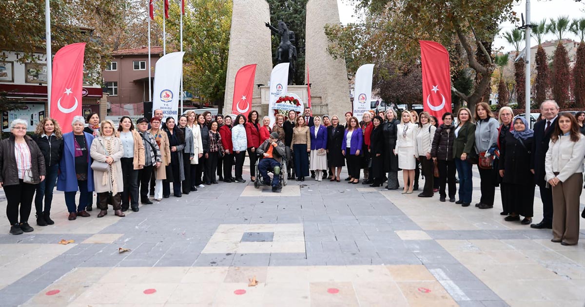 Denizli Büyükşehir Belediyesi Kent Konseyi Kadın Meclisi, 5 Aralık Dünya Kadın Hakları Günü dolayısıyla Atatürk Anıtı’na çelenk sundu, ardından düzenlenen programda kadın siyasetçiler, STK temsilcileri ve yerel yöneticiler bir araya geldi.