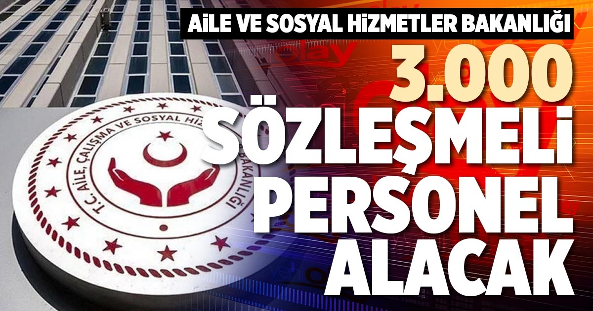 Aile ve Sosyal Hizmetler Bakanlığı merkez ve taşra teşkilatında çalıştırılmak üzere, KPSS puan sıralaması esas alınmak suretiyle mülakatsız 3.000 sözleşmeli personel alınacak. Bugün başlayan ve 26 Aralık’a kadar devam edecek başvurular e-Devlet üzerinden yapılacak.