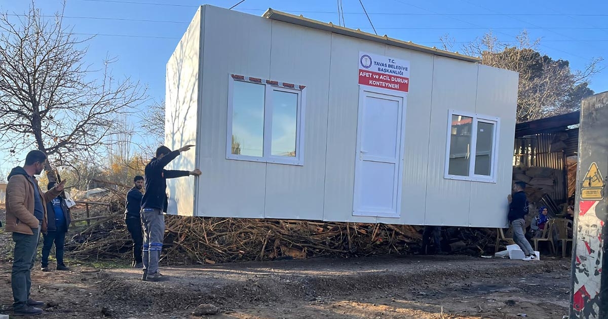 TAVAS BELEDİYESİ'NDEN YANGINDA EVİ KÜL OLAN AİLEYE KONTEYNER EV DESTEĞİ