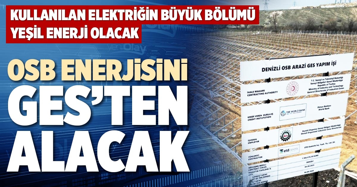 Denizli’de 215 sanayi parselinin bulunduğu, 30 bin kişiye istihdam sağlayan ve yılda 1 milyar doların üzerinde ihracat gerçekleştiren Denizli Organize Sanayi Bölgesi enerji tüketiminin büyük bölümünü ‘Yeşil Enerji’den sağlayacak.
