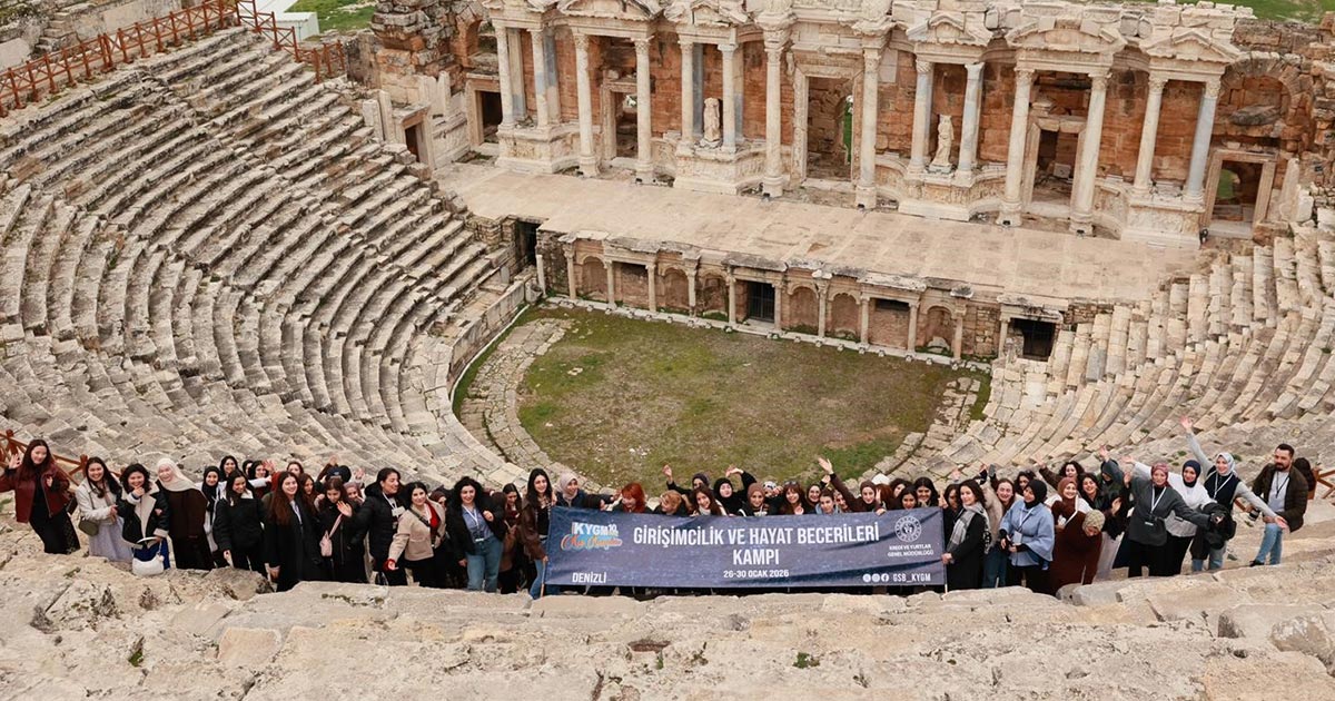 Girişimcilik ve Hayat Becerileri Kampı'nın dördüncü gününde düzenlenen tematik gezi kapsamında, kampa katılan 100 genç Pamukkale Travertenleri, Hierapolis Antik Kenti ve Karahayıt Mahallesi'ni ziyaret etti. Antik Tiyatro ve Arkeoloji Müzesi gezisinin ardından Karahayıt'ta termal kırmızı suyu yerinde inceleyen gençler, bölgenin doğal ve kültürel mirasını yakından tanıma fırsatı buldu. Gezi programı kapsamında ayrıca Laodikya Antik Kenti de ziyaret edildi. Antik dönemin önemli ticaret ve kültür merkezlerinden biri olan Laodikya'da, geçmişten günümüze uzanan uygarlık izlerini inceleyen gençler, tarih ve kültürle iç içe verimli bir deneyim yaşadı.