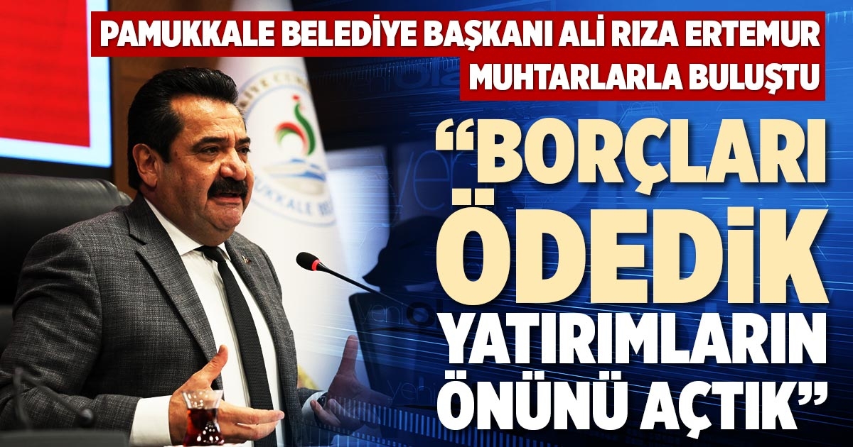 Pamukkale ilçesine hizmet ederken her zaman muhtarlarla iş birliği içinde olan Belediye Başkanı Ali Rıza Ertemur, toplantıda yaptığı konuşmada mali disiplin vurgusu yaptı. Başkan Ertemur, devralınan yüklü borç yüküne rağmen hizmetten ödün vermediklerini vurgulayarak, “21 ayda hem geçmiş dönemden kalan borçlarımızı temizledik hem de kamuya, personele veya piyasaya tek kuruş borcu olmayan, kendi ayakları üzerinde durabilen bir belediye haline geldik. Yatırım yapma şansımız yok gibi görünürken; bugün araç filosunu güçlendiren ve üretim tesislerini kuran bir belediyeyiz” dedi.