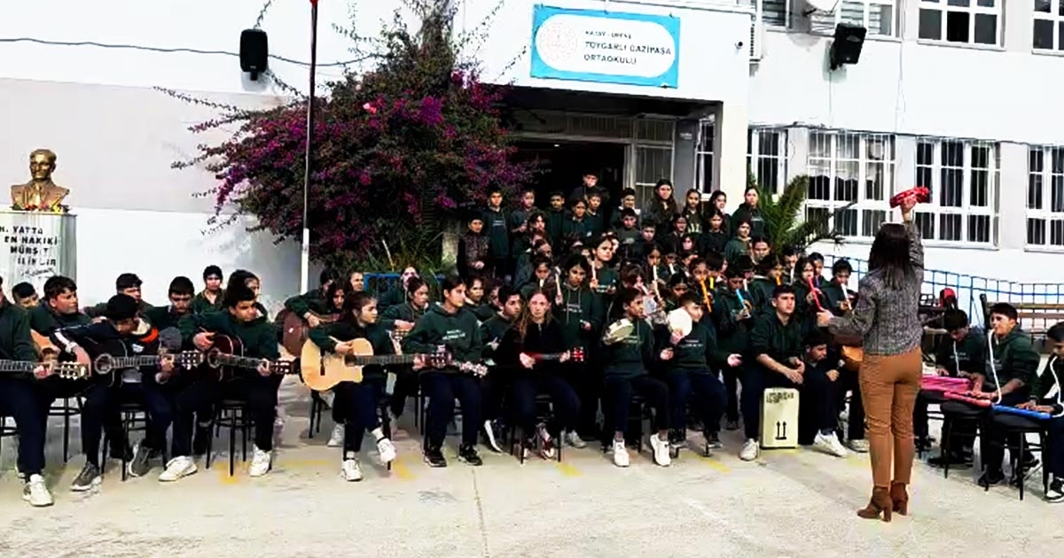 Denizli Büyükşehir Belediyesi’nin deprem felaketinin ikinci yılında Hatay’da sağladığı enstrüman desteği, Toygarlı Gazipaşa Ortaokulu öğrencilerinin kalpten gelen notalarıyla umuda dönüştü.