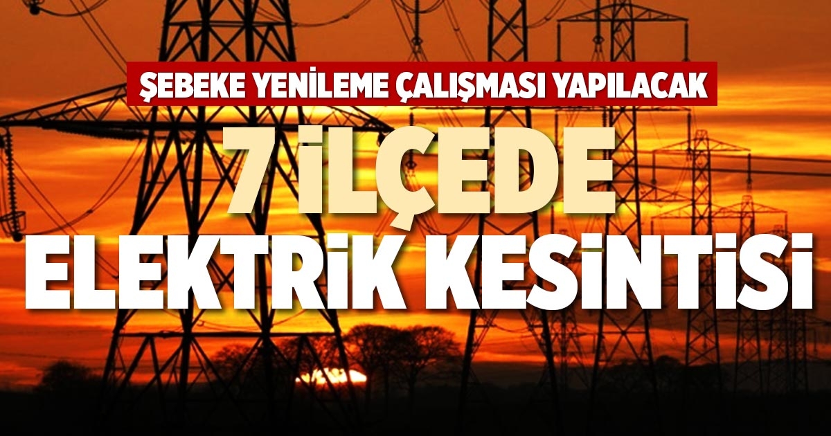 Şebeke yenileme ve bakım çalışması nedeniyle yarın 7 ilçenin çeşitli mahallelerinde elektrik kesintisi uygulanacak.
