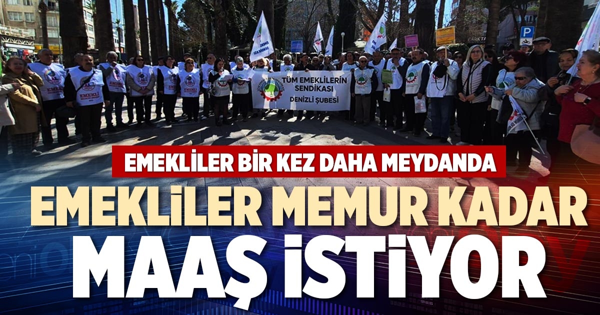 Denizli’de emekliler bir kez daha meydandan seslendi, aylıklarının yetersiz olduğuna dikkat çekti. Tüm Emeklilerin Sendikası üyeleri, emekli maaşının en düşük memur maaşı seviyesine çekilmesini istedi.