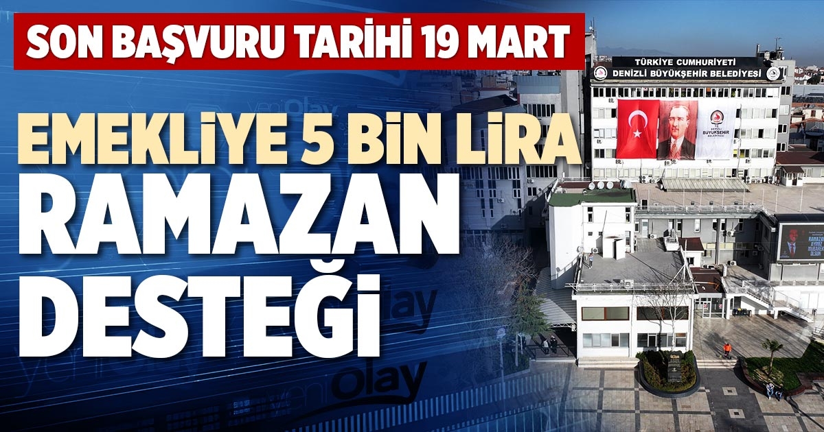 Denizli Büyükşehir Belediyesinin ihtiyaç sahibi emeklilere yönelik 5 bin TL’lik Ramazan desteği programına başvurular 19 Mart Perşembe günü sona erecek. Müracaatlar çevrim içi olarak yapılıyor.