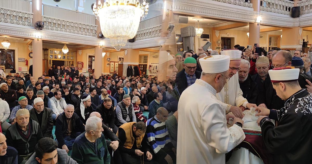 Gecenin ilerleyen saatlerinde manevi atmosfer daha da derinleşirken, programın en anlamlı anlarından biri ise Peygamber Efendimiz Hazreti Muhammed’in (s.a.v.) mübarek Sakal-ı Şerif’inin salavatlar eşliğinde cemaate gösterilmesi oldu. Büyük bir saygı ve huşu içerisinde gerçekleştirilen bu anlarda camide adeta duygu seli yaşandı. Vatandaşlar, Sakal-ı Şerif’i görmek için sıraya girerken salavatlar eşliğinde yapılan ziyaret geceye ayrı bir anlam kattı.
