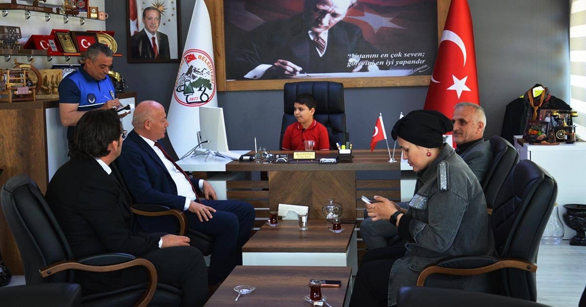 Denizli’nin Babadağ ilçesinde 23 Nisan Ulusal Egemenlik ve Çocuk Bayramı kutlamaları çerçevesinde anlamlı bir devir teslim töreni gerçekleşti. Babadağ Belediye Başkanı Murat Kumral, makam koltuğunu geleceğin teminatı olan çocukları temsilen Muhammet Yılmaz’a bıraktı. Günün en özel misafirini makamında ağırlayan Başkan Kumral, görevi devralan Muhammet Yılmaz ile yakından ilgilendi. Belediye bünyesinde yürütülen çalışmalar ve çocuklara yönelik projeler hakkında bilgi alışverişinin yapıldığı ziyarette konuşan Babadağ Belediye Başkanı Murat Kumral, şu ifadeleri kullandı: "Bugün makamımızın en anlamlı misafirlerinden biri Muhammet Yılmaz’dı. Çocuklarımızın hayalleri, bizim en güçlü yol göstericimizdir. Onlara daha güzel, daha yaşanabilir bir gelecek sunmak için var gücümüzle çalışmaya devam edeceğiz"