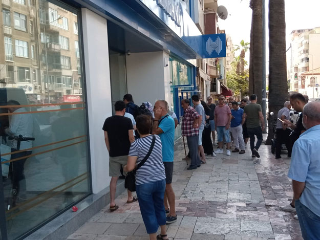14 Mayıs ve 28 Mayıs seçimleri, sandıklarda görev alan görevlilerin ücretleri yattı. Denizli’de paralarını çekmek isteyen görevliler, Halk Bankası Çınar Şubesi önünde kuyruk oluşturdu.