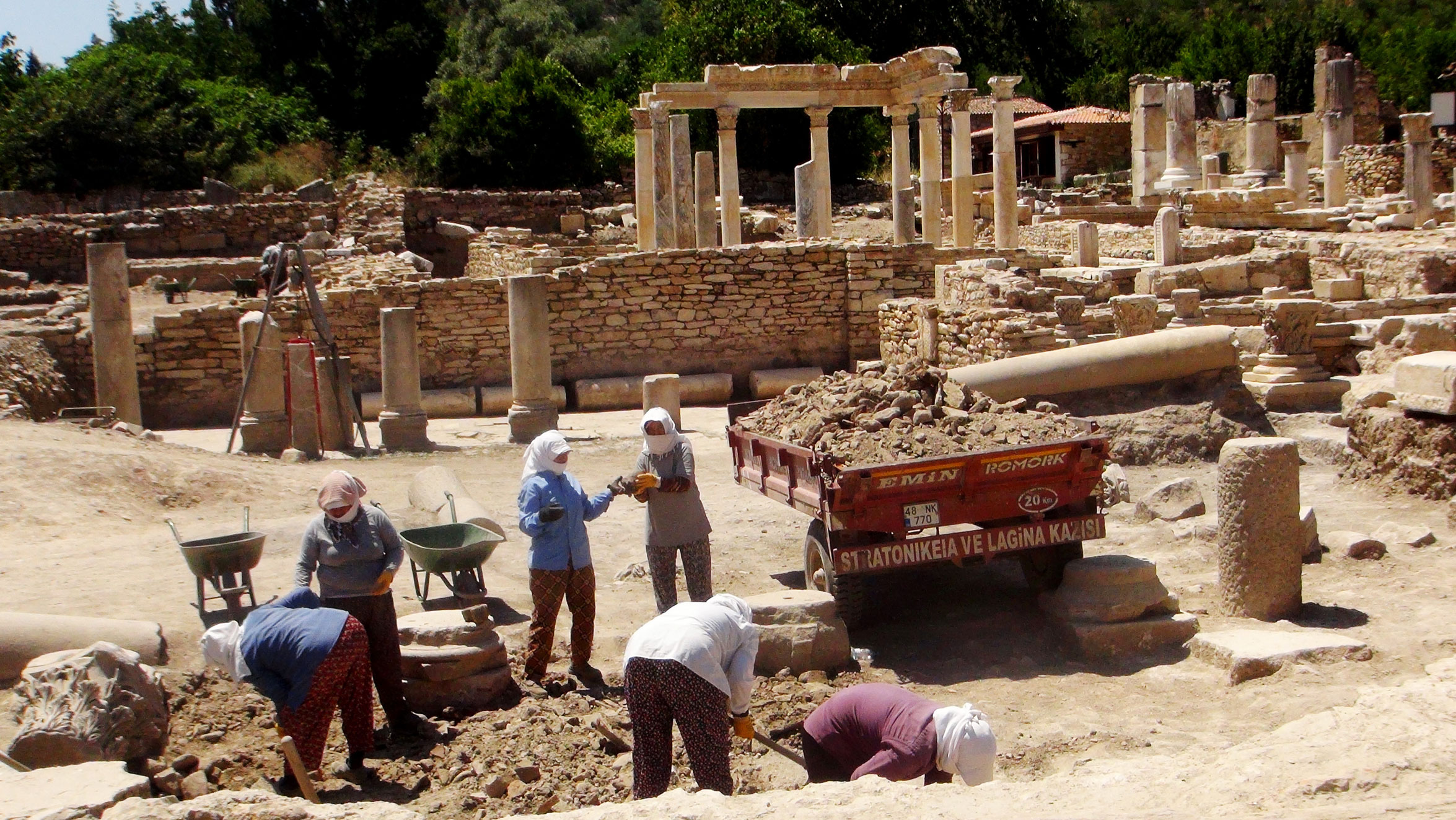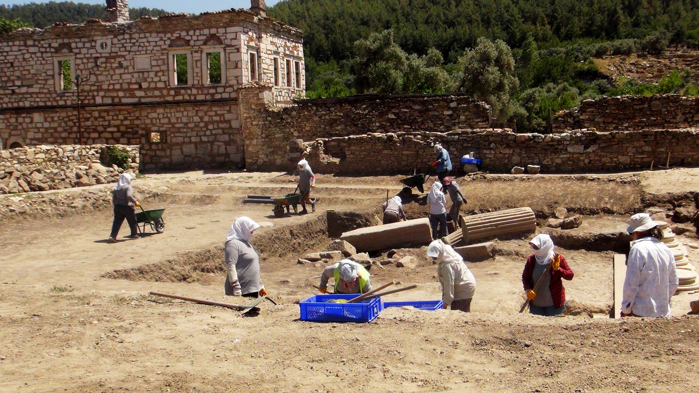 43 derecede seyreden hava sıcaklığı mermerlerin de ışıması ile 45-47 dereceye ulaşıyor. Geniş bir alanda sürdürülen kazı çalışmalarında çoğunluğu kadın işçi ve arkeolog, yakıcı güneş altında hem kazma-kürek sallıyor, hem el arabası ile toprak hafriyatı taşıyor, sıcak hava ile mücadele ediyorlar. Yatağan ve çevre kırsal mahallelerden gelen ev kadınları, yakıcı güneş altında ekmek parası kazanırken, aile bütçelerine de katkı sağlıyorlar.