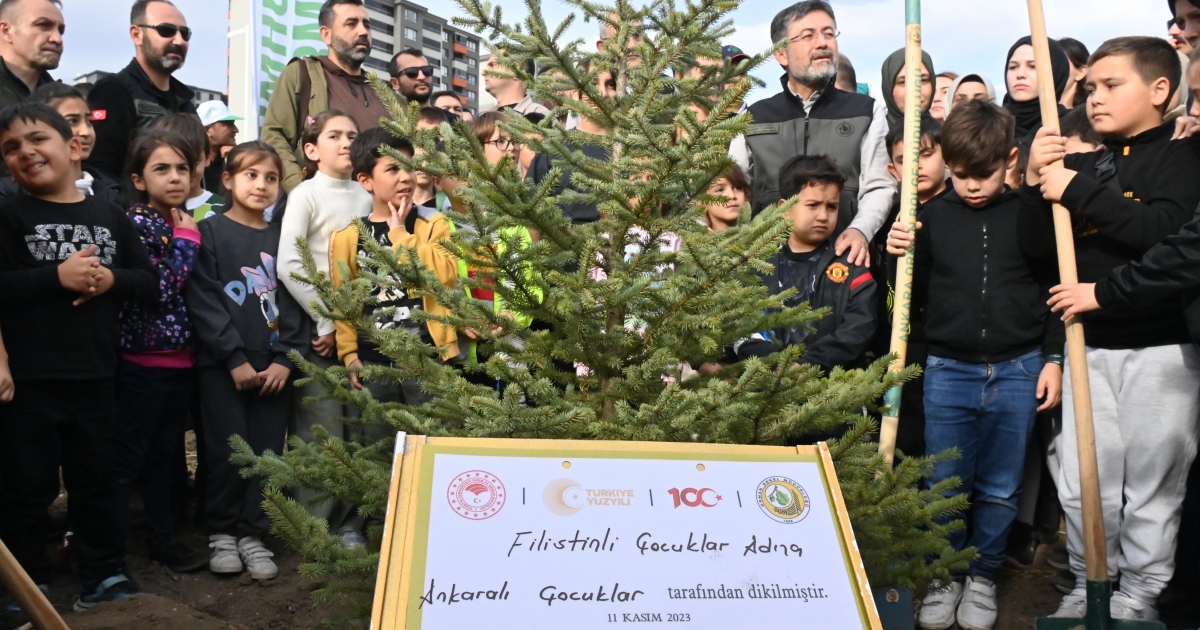 Hediye takdiminin ardından alanda fidan dikimine geçildi. Bir fidana cansuyunu veren Yumaklı, ardından çocuklarla birlikte Gazze'de hayatını kaybeden bebekler için de ayrıca fidan dikti.