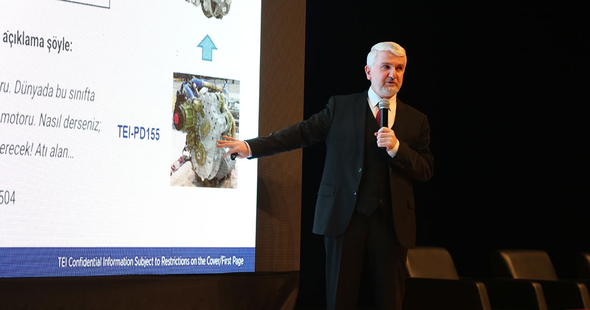 Prof. Akşit, yaptığı konuşmada, uçak ve helikopter motorları ile özellikleri hakkında bilgi verdi. Yaptıkları motorların kısa sürede göklerde uçtuğunu dile getiren Akşit, Türkiye'nin ilk milli helikopter motoru TEİ-TS1400'ü hiçbir altyapı olmadan 6 yıl gibi rekor sürede ilk uçuşunu gerçekleştirdiklerini belirterek, "Bu güce yakın sınıftaki motorların proje başlangıcından ilk uçuş sürelerine baktığımızda İngiliz-ABD malı diğer motor ilk uçuşunu sekizinci yılda yapmış. Fransızların da motoru var daha küçük motor ilk uçuşunu 8,5 yılda yapmış. Bu proje bitim süreleri çok daha uzun. 12-13 yılda bitenler var seri imalata geçmiş yani. Biz inşallah bir aksilik olmazsa bir yıl içerisinde seri imalata geçmiş olacağız" dedi.