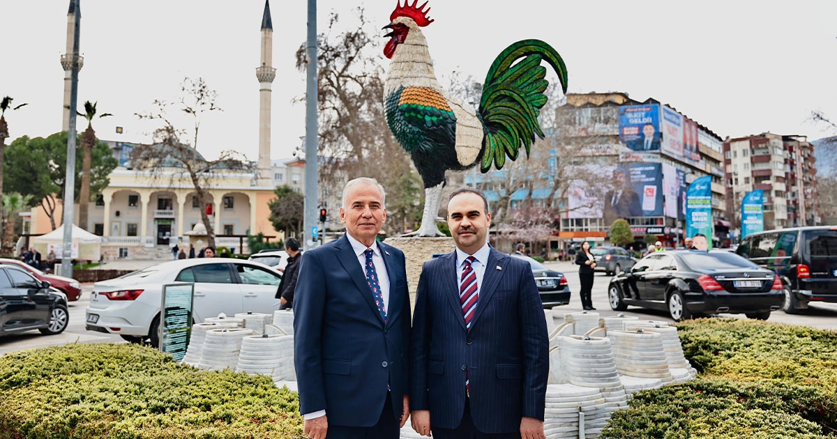 Sanayi ve Teknoloji Bakanı Mehmet Fatih Kacır, bir dizi ziyaret ve program için geldiği Denizli’de Büyükşehir Belediye Başkanı Osman Zolan'ı makamında ziyaret etti. Ziyarete, Bakan Kacır’ın yanı sıra Denizli Valisi Ömer Faruk Coşkun, Denizli Milletvekili Cahit Özkan, Şahin Tin ve Nilgün Ök, TÜBİTAK Başkanı Hasan Mandal, Pamukkale Üniversitesi Rektörü Ahmet Kutluhan, AK Parti Denizli İl Başkanı Yücel Güngör ile beraberindekiler eşlik etti. Belediye binasına TOGG makam aracının direksiyonunda gelen Bakan Kacır’a yolcu koltuğunda Başkan Zolan ve Milletvekili Özkan ile Ök eşlik etti. Başkan Zolan ziyarette, Bakan Kacır’a Büyükşehir Belediyesi Kültür ve Sosyal İşler Dairesi Başkanlığı'nda sergilenen ünlü Yatağan palası, Büyükşehir Belediyesi Kültür Yayınlarından oluşan eserleri ve Denizli Sancağını anlattı.