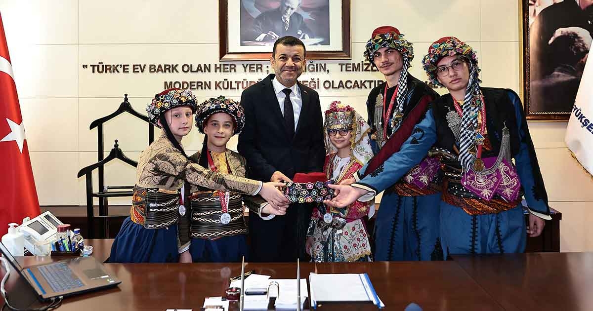 16 takımın yer aldığı yarışmada,“minikler geleneksel düzenlemesiz”dalda il birinciliği,“minikler geleneksel düzenlemeli” dalda il ikinciliği,“büyükler geleneksel düzenlemeli” dalda il birinciliği ve “büyükler geleneksel düzenlemesiz” dalda il ikinciliği kazanan halk oyunları ekibi aldıkları kupları Başkan Çavuşoğlu’na getirdi.