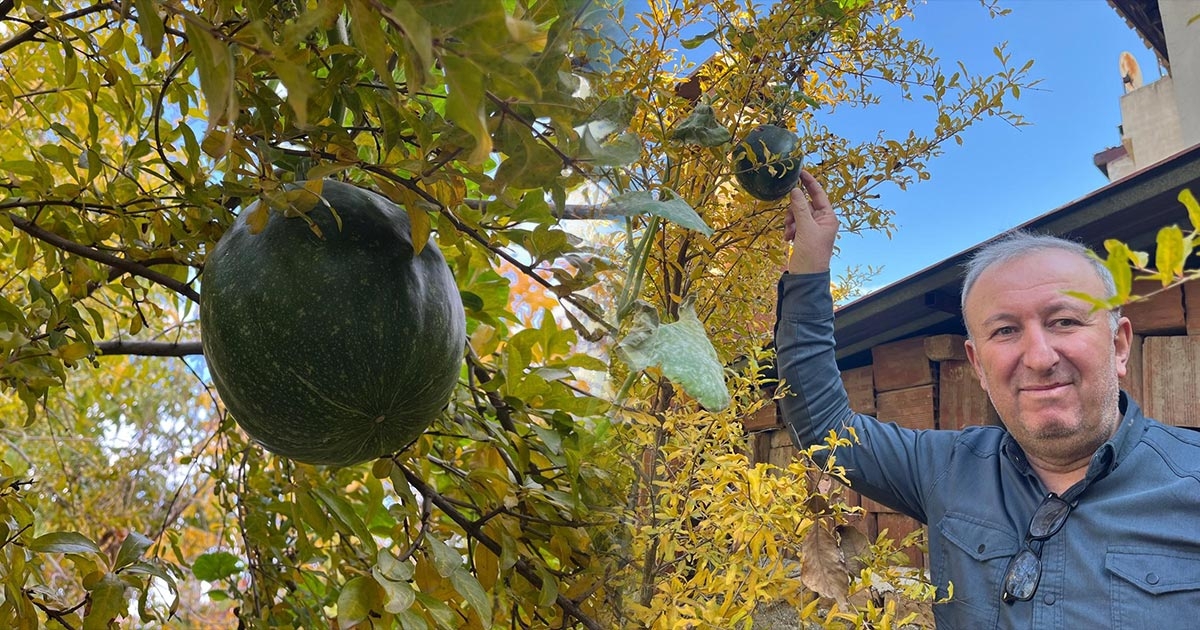 Denizli'nin Buldan ilçesi Turan Mahallesi'nde bahçeye ekilen kabak, nar ağacının tepesinde meyvelerini verdi. Bahar aylarında kabak çekirdeklerini toprağa gömdüğünü belirten MemnuneAcıkara, "Kabaklar dökecek diye çok uzun süre bekledim. Sulamasını yaptım, yabani otlarını temizledim. Her tarafa kol attı ancak bir türlü meyveye dönmedi. Ben artık kış geldi bu zamandan sonra meyve vermez diye düşünüyordum. Daha sonra iki nar ağacımın tepesinde kabakların olduğunu gördüm. Toprakta yetişmeyen kabaklar nar ağaçlarında yetişti. Bugüne kadar böyle bir şey hiç görmedim duymadım. Emeklerim çok şükür boşa gitmedi" dedi.