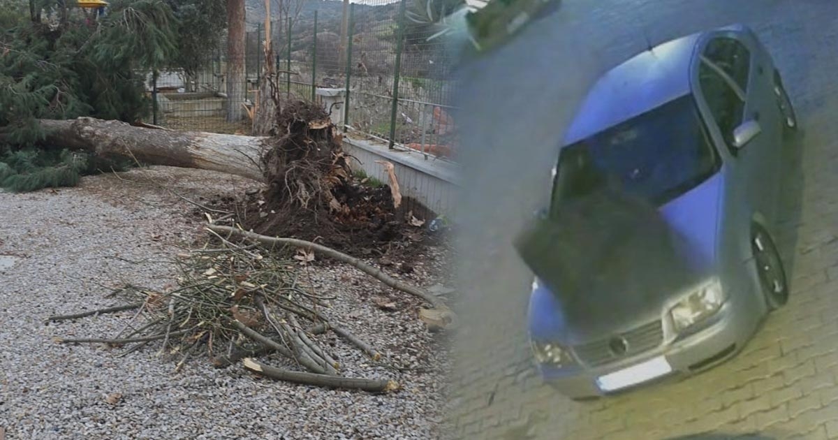 Buldan’da gece saatlerinde etkili olan şiddetli fırtına, okul bahçesindeki ağacı kökünden söktü, bacaları uçurdu ve kopan dallarla araçlarda maddi hasara yol açtı. Şans eseri can kaybı yaşanmadı.
