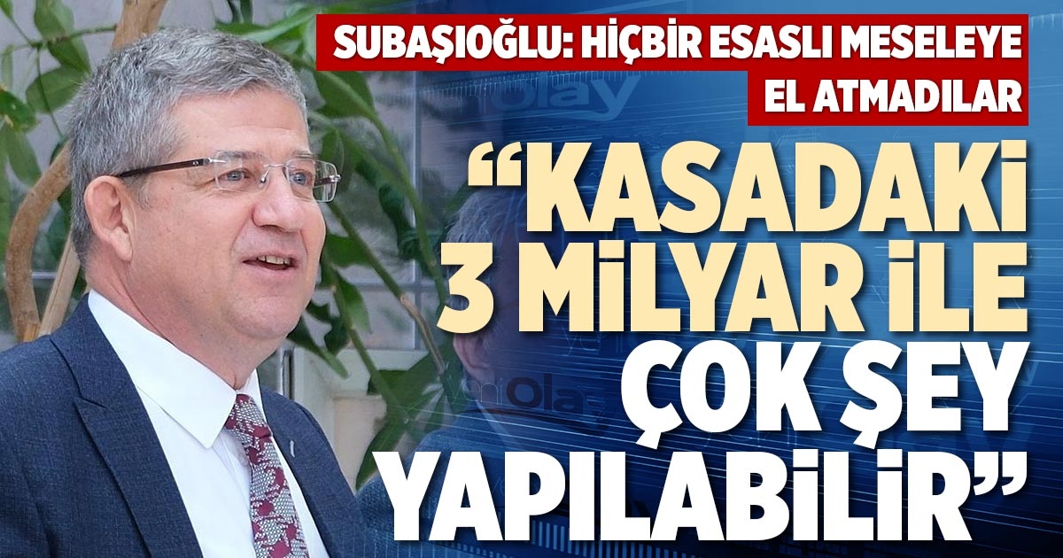 AK Parti İl Başkanı Subaşıoğlu, CHP’li belediyeleri hiçbir esaslı meseleye el atmamakla suçladı, büyükşehir belediyesinin kasasında 3 milyarlık kaynak olduğunu ve kaynakla çok şeyler yapılabileceğini kaydetti.