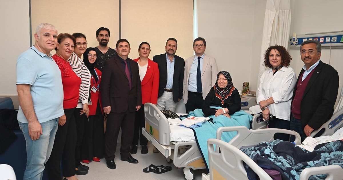 Hastane yönetimi yataklı servislerdeki hastaları ziyaret ederek günün anısına hediye takdim etti.