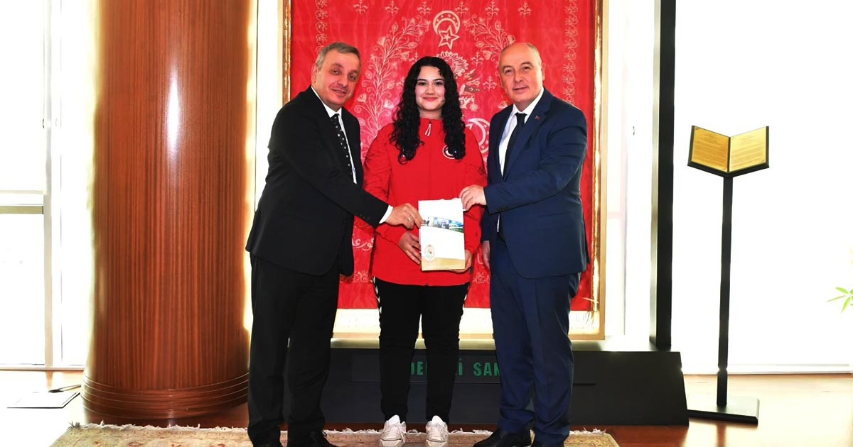 2025 Lakeside Dünya Şampiyonası’nda Genç Kızlar Dünya Şampiyonu olan millî dartçı Zehra Gemi, Denizli Valisi Ömer Faruk Coşkun’u makamında ziyaret etti.